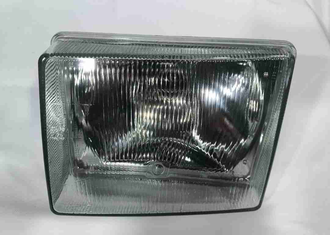 O farol esquerdo para o Fiat Uno dos anos 1984 a 1990 e uma peca de reposicao para o lado do motorista, caracteristica das primeiras versoes do modelo no Brasil, que utilizavam um formato retangular distinto.