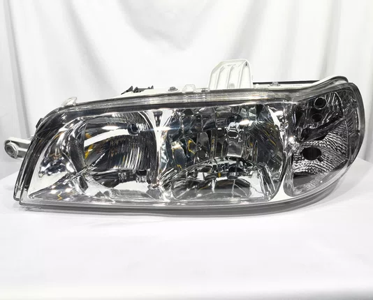 – Farol Principal Fiat Palio / Siena / Strada Máscara Cromada, Carcaça Cinza Lado Esquerdo de 2001 até 2003