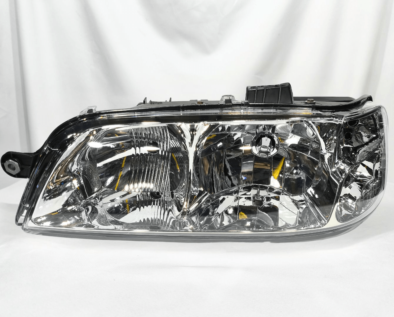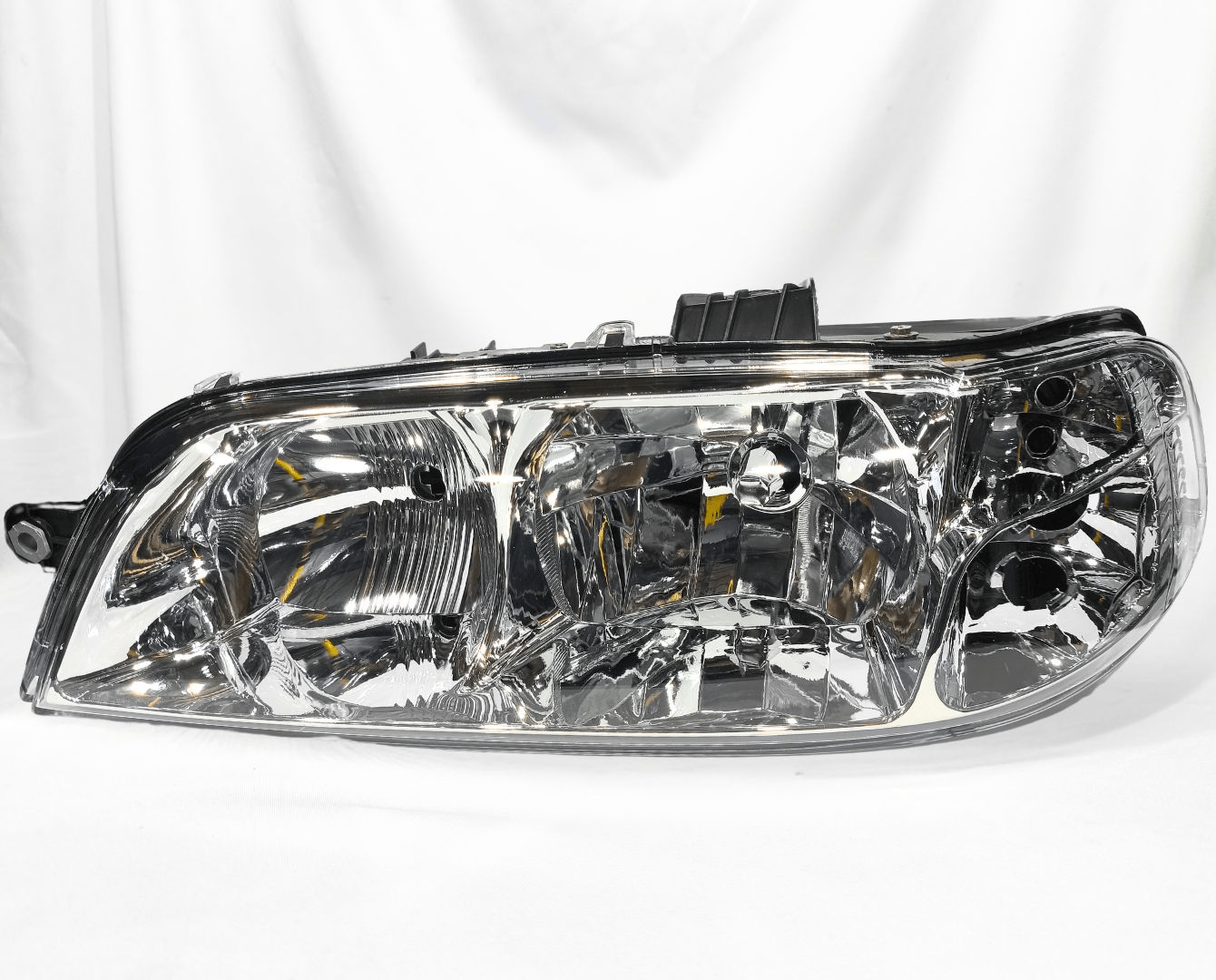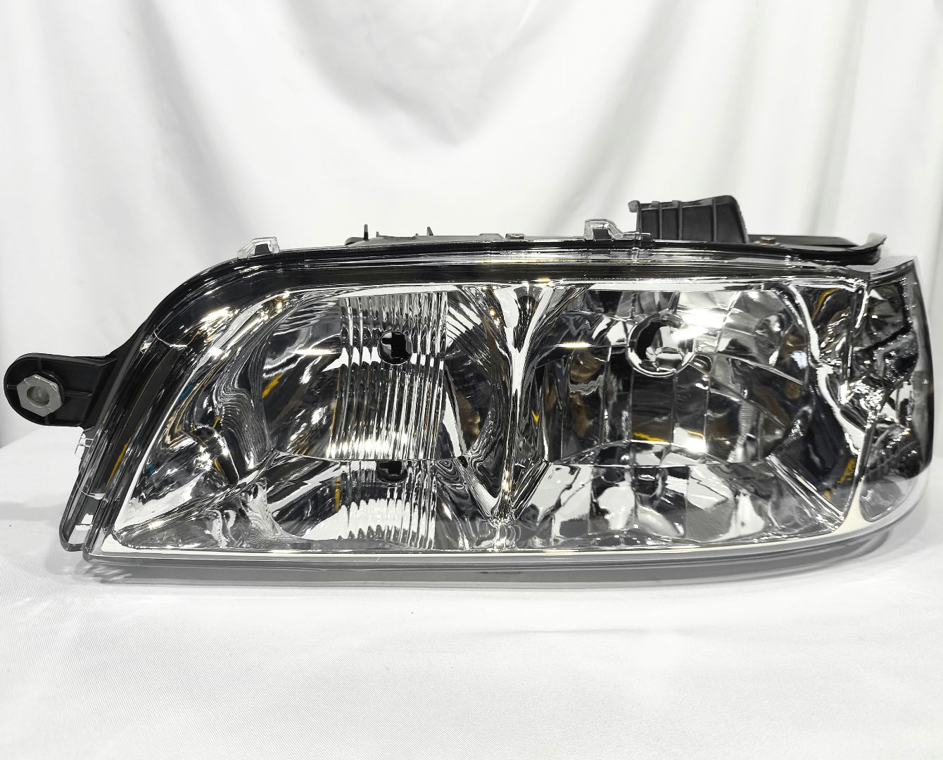 – Farol Principal Fiat Palio / Siena / Strada Máscara Cromada, Carcaça PretaLado Esquerdo de 2001 até 2003