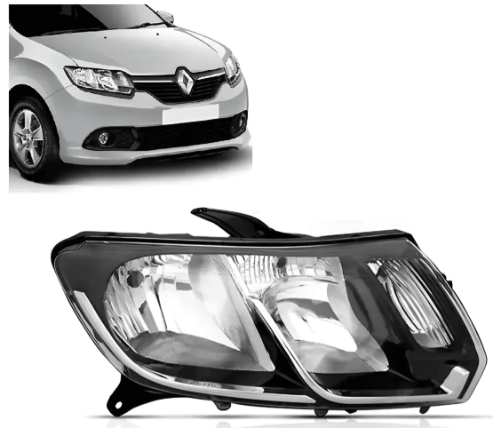 O farol mascara negra lado direito para o Renault Sandero e Renault Logan ano 2015 possui foco duplo e utiliza lampadas com encaixe H1 e H7.