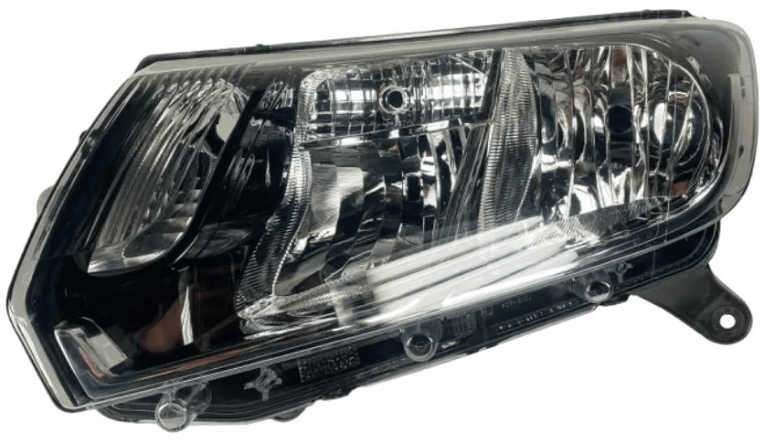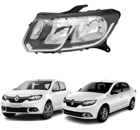 O farol mascara negra lado esquerdo para o Renault Sandero e Renault Logan ano 2015 possui foco duplo e utiliza lampadas com encaixe H1 e H7.