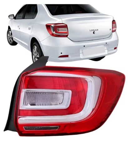 A lanterna traseira para o Renault Logan dos anos 2014 a 2019, no lado direito (passageiro), com design bicolor, é um item de reposição padrão que se integra perfeitamente ao visual original do veículo.