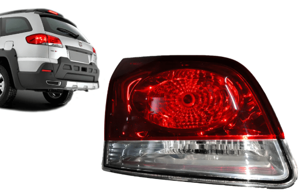 A lanterna traseira da mala lado esquerdo para o Palio Weekend 2008 a 2016 possui lente em acrílico resistente, carcaça de plástico e é do modelo bicolor rubi (vermelho e cristal), essencial para a segurança e estética do veículo.