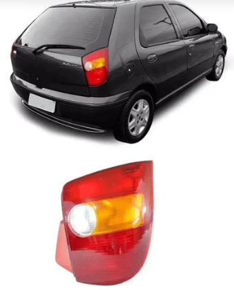 A lanterna traseira lado direito para o Fiat Palio (hatch) anos 1996 a 2000 é um componente tricolor, geralmente com lente em acrílico resistente e carcaça de plástico, essencial para a sinalização do veículo.