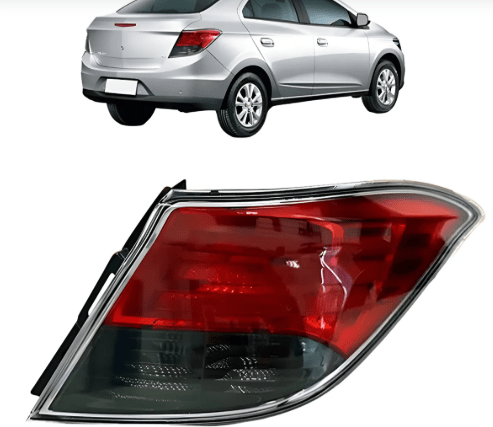 Esta lanterna traseira é específica para o Chevrolet Prisma (G2), fabricado entre 2013 e 2016, sendo instalada no lado direito (lado do passageiro). O modelo com ré fumê é característico das versões mais completas e esportivas desse período.